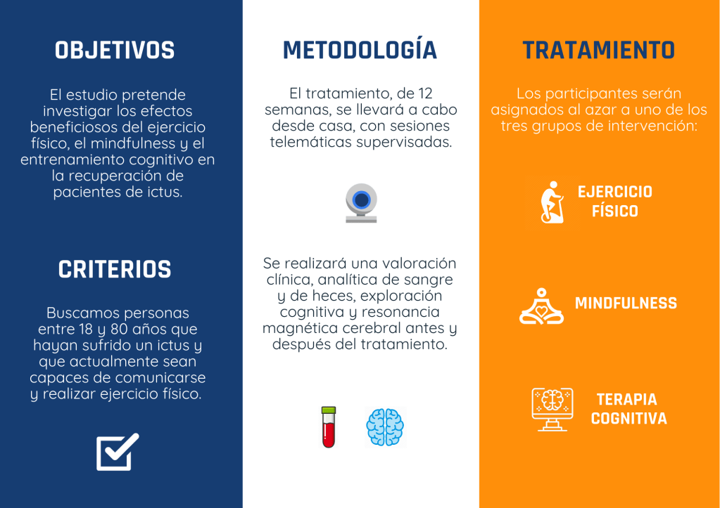 Partiendo de estos conocimientos, la investigación encabezada por la Dra. Maria Mataró Serrat (Catedrática de Psicología de la Universidad de Barcelona) y financiada por La Marató de TV3 pretende estudiar el efecto que el ejercicio físico, el mindfulness y el entrenamiento cognitivo tienen en la recuperación cognitiva, emocional y social de pacientes que han sufrido un ictus. El Proyecto MindFit, tal como ha sido bautizado, constituye un ambicioso estudio orquestado por profesionales interdisciplinarios de tres centros de renombre: la Facultad de Psicología de la Universitat de Barcelona, el Hospital Germans Trias i Pujol y el Institut Guttmann.
